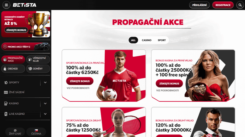 Konkrétní výhody se ale mohou lišit podle úrovně účtu a aktivity, proto je vždy dobré zkontrolovat aktuální podmínky přímo na webu Betista.